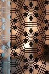 空间之中,蜀锦、竹编、瓷艺等非遗技艺被巧妙织入当代语境:双交四椀菱花窗透出川派窗棂的秩序之美、蜀锦工艺定制墙面流淌千年织造的细腻肌理、竹艺吊灯轻盈悬垂,点染东方诗意。