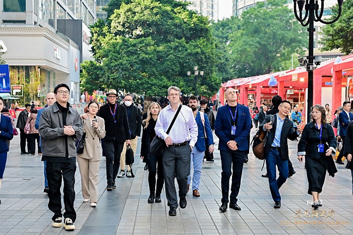 11月27日下午,在福布斯中国和重庆市渝中区多个部门的组织与陪同下,以海外企业代表为主体的众多国内外嘉宾考察了解放碑十字金街、新华中心、复星国际、陆海国际中心等多个渝中区重点产业项目,以及沿途的产业载体、商业综合体和传统风貌地标。随后,嘉宾们受邀前往渝中区机关综合办公大楼与区领导进行了亲切友好的会见,并出席了稍后在中英联络处旧址举办的欢迎酒会。