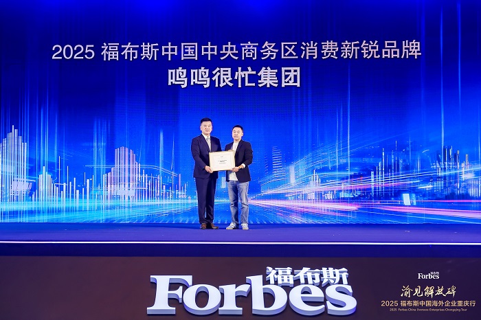 最后,本次大会的压轴环节——“2025福布斯中国中央商务区国际化消费竞争力评选”,及其子评选“2025 福布斯中国中央商务区消费标杆品牌”“2025 福布斯中国中央商务区消费新锐品牌”与“2025福布斯中国中央商务区服务创新品牌”颁奖仪式隆重登场。福布斯中国集团总裁张清琏为入选CBD和企业代表颁奖。