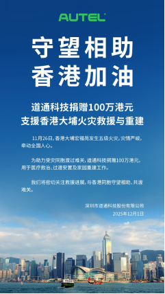 近日,香港大埔发生的火灾事故牵动人心。深圳市道通科技股份有限公司(688208)12月1日宣布,向香港特区政府“大埔宏福苑援助基金”捐赠100万港元,专项用于支持受灾地区的医疗救治、过渡安置及家园重建工作。