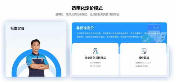 相较于线下游击队的“一锤子买卖”,互联网平台严格制定标准服务流程,从预约到上门再到诊断、出方案、定价、维修,后台直观显示服务前、服务中、服务后全流程节点,无形服务有形化,服务流程可视化,服务动向可追溯,服务时效可量化。