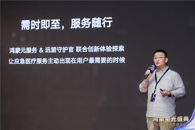 在近日举办的鸿蒙星光盛典·元服务生态专题论坛上,远盟康健旗下北京远盟健康科技有限公司产品总监魏爽与美团外卖、中免日上、企查查等行业领军企业代表同台,分享远盟在应急安全领域的创新实践,并正式宣布「远盟守护官」元服务登陆鸿蒙手机系统。