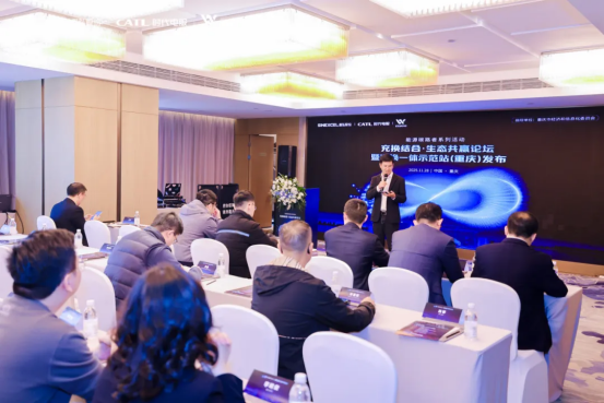 11月28日,在重庆市经济和信息化委员会指导下,由盛弘股份、时代电服、亿瓦研究院联合主办的“充换结合·生态共赢”论坛在重庆成功召开。论坛现场,盛弘股份联合时代电服、斐然新能源重磅发布重庆充换一体示范站,并以此新起点,携手产业链各方迈向 “充换结合”新时代。