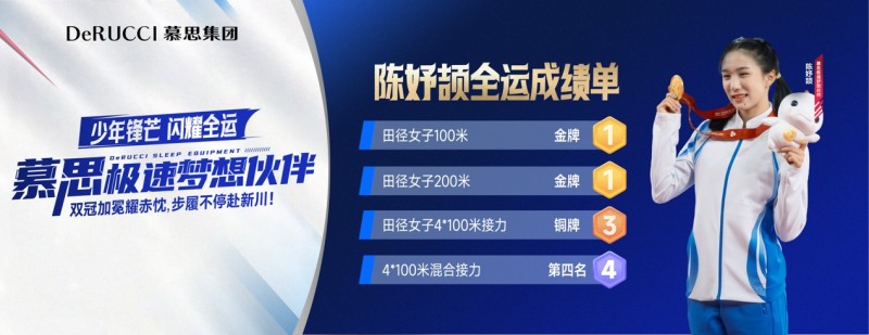 11月20日,第十五届全运会田径赛事落幕,16岁短跑新星陈妤颉在女子100米、200米项目中双双夺金,成为全运会史上最年轻的"双冠王"。这位四赛八枪全程作战的"劳模小将",在慕思"极速梦想陪伴计划"的睡眠保障下,展现出惊人的续航能力,用科学恢复为竞技表现赋能。