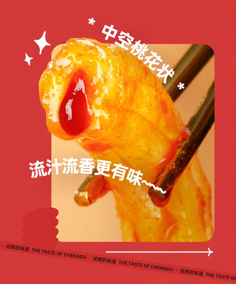 为了让这一特色小吃能够走向全国,阿宽食品进行了深入探讨,创新性地将东北“粉耗子”的独特形态、咀嚼感,和川渝风味的麻辣鲜香进行结合,创造出一款具有鲜明记忆点的新式方便食品。