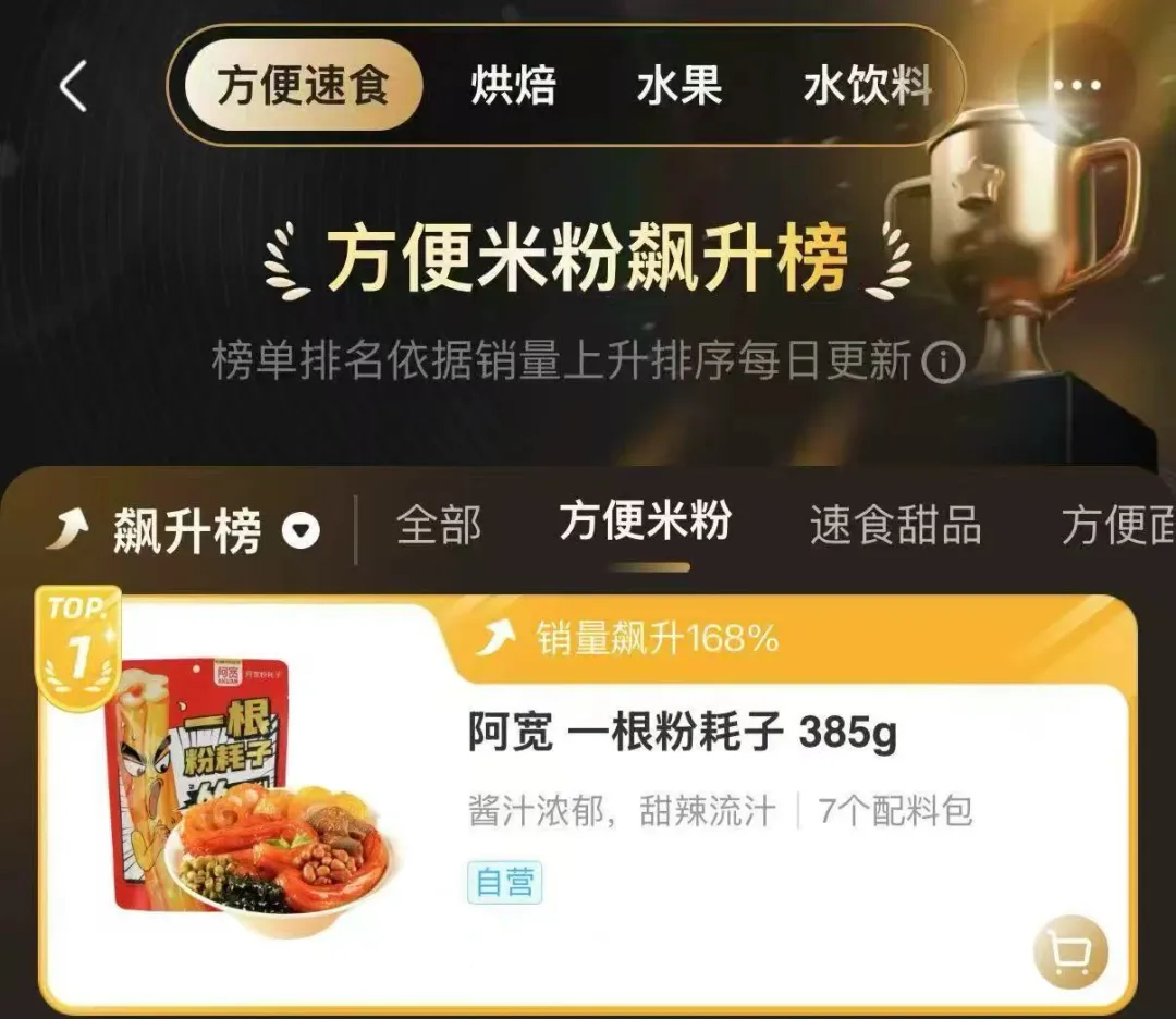 一根粉耗子荣登盒马方便米粉飙升榜榜首