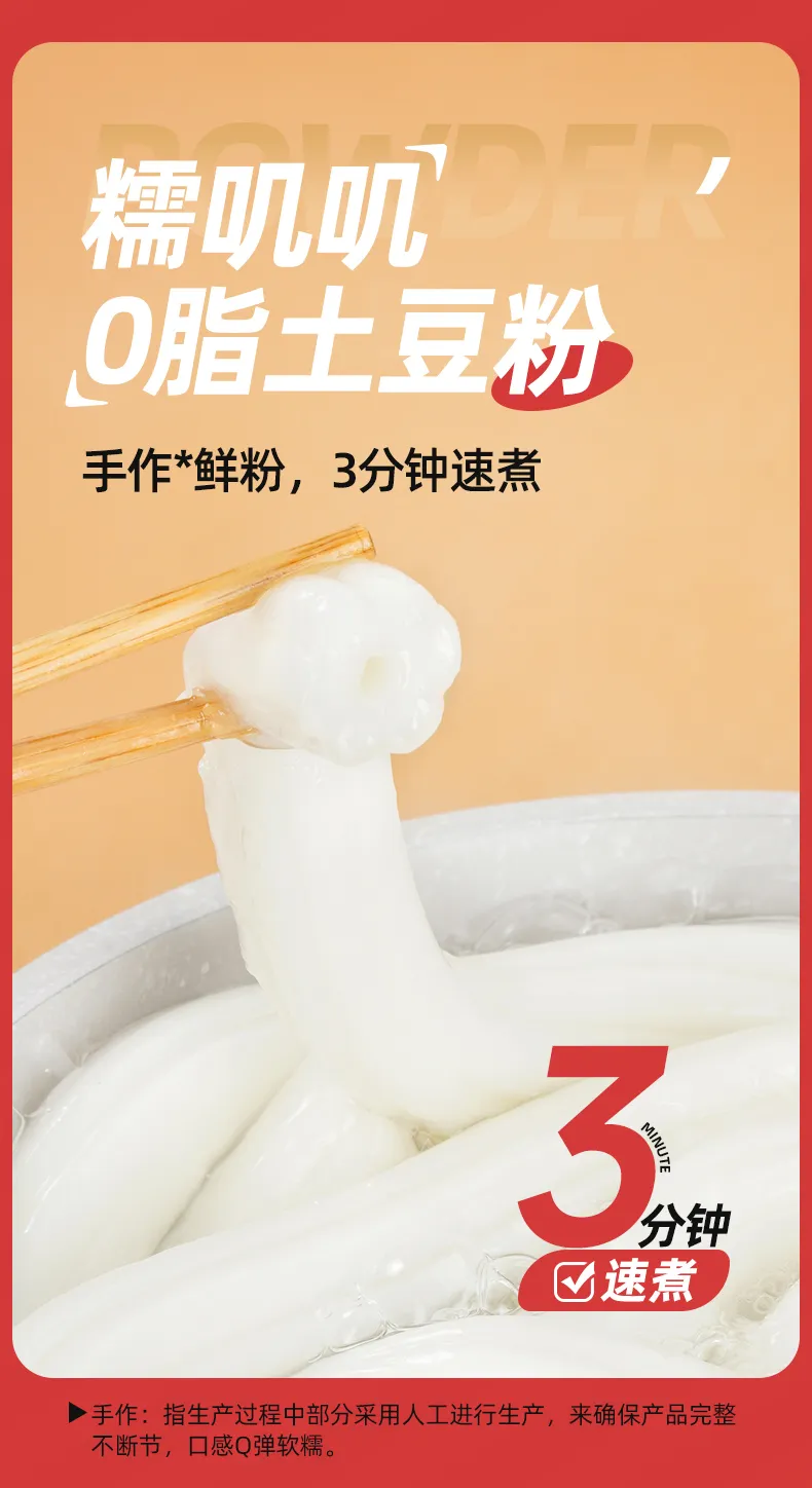 在产品测试阶段,为了让45厘米超长的粉耗子在口味上可以有更好的体验,研发团队进行了多次实验,最终确定了其中空桃花状造型,这种粉体结构有效提升了料汁的吸附能力,使每一口都能保持丰富滋味。