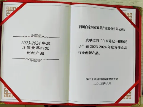 一根粉耗子的独特设计不仅获得了市场认可,也收获了专业荣誉。这一创新设计使粉耗子荣获2023-2024年度方便食品行业创新产品称号,并获得了独家设计专利。