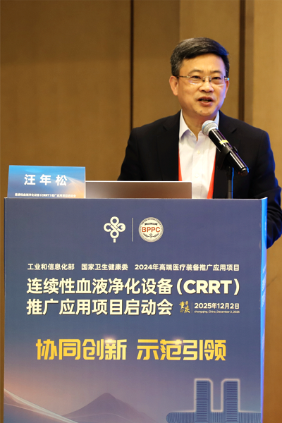 2025年12月2日,由国家工信部、国家卫健委联合推动的高端医疗装备推广应用项目——连续性血液净化设备(CRRT)推广应用项目启动会正式举行。重庆市经济信息委、卫生健康委相关领导,中华医学会肾脏病学分会候任主任委员丁小强教授、中国医疗器械行业协会血液净化专业委员会主任委员汪年松教授及全国数十家知名医院的肾脏病学、重症医学、急诊医学等多学科专家齐聚现场,共同见证项目启动,标志我国高端血液净化装备推广应用迈上新台阶。