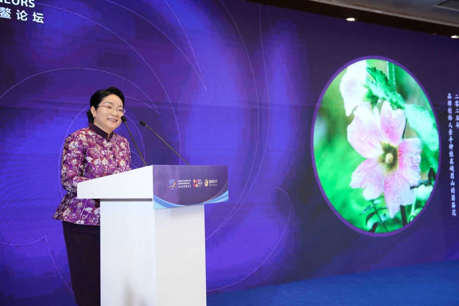 蜀葵花开品牌创始人、四川蜀盟花葵科技有限公司董事长赵淳在主旨演讲中回顾了从媒体人到文化品牌创立者的转型历程。过去两年,她与团队通过拜访专家、非遗匠人,挖掘蜀葵历史与文化价值,并联合科研机构研发产品,通过“色、香、味、艺、触”等多维度对传统文化进行创新表达。“中国的文化之美,既藏在千年典籍的字里行间,也开在每一个平凡的人对生活的热爱之中。”赵淳表示,未来,“蜀葵花开”品牌还将通过数字文创、巡展等方式,让更多年轻人爱上这朵古老的花,同时搭建创业平台,让更多女性和青年能借着“蜀葵”的力量实现自我价值,共同成为蜀葵文化的“守护者”与“传播者”。