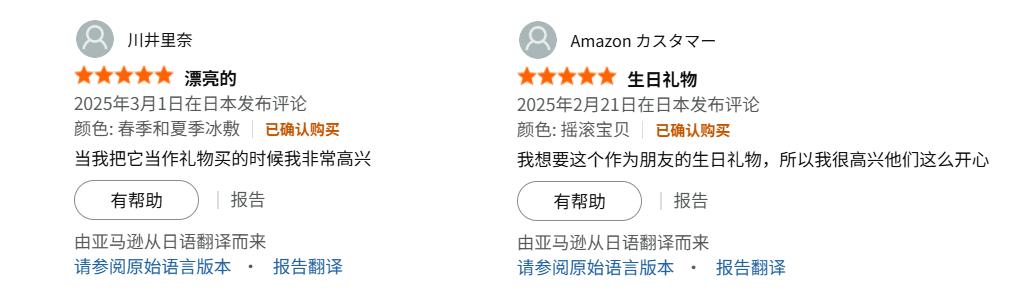 在亚马逊花知晓的评论区,用户自发分享买到产品后的使用心得、表达对品牌的热爱,还有不少用户提到“礼赠”场景,这也为品牌后续的渠道角色规划,奠定了初步基础。