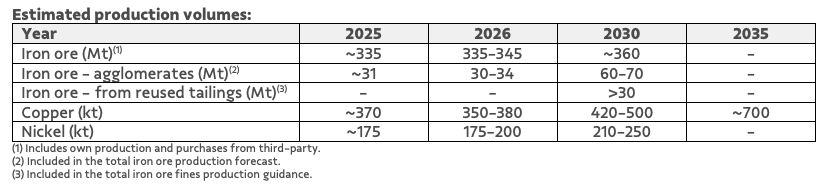 当地时间12月2日,巴西淡水河谷公司表示,公司已对多项预期作出更新,其中2026年铁矿石产量将介于3.35亿至3.45亿吨,低于此前给出的3.4亿至3.6亿吨区间。