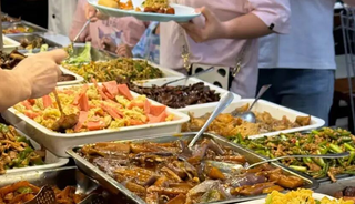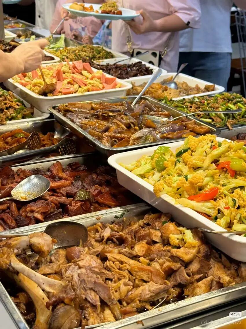 尤其是快餐食堂模式,凭借丰富菜品与实惠价格,同样也成为商超吸引客流的“流量密码”。据了解,永辉超市早在2023年11月就试点食堂模式,主打平价现炒,推出“3个菜12元、4个菜15元”的盒饭套餐;北京物美超市自去年7月推出13元、19.9元两档自助餐,涵盖凉菜、热菜、汤品、水果等品类,支持堂食与打包。据有意思报告,这批超市用餐时段曾一度排得水泄不通。
