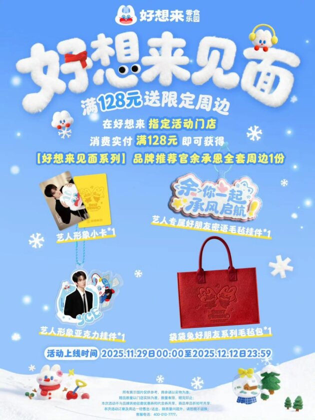 此次与余承恩的合作,是好想来“袋袋兔的好朋友”情绪营销战略的一次关键性落地。品牌通过与调性相符的艺人合作共创,打造温暖、有趣的品牌人格化形象,将明星自身的粉丝情感黏性,高效转化为对好想来品牌的长久忠诚度。除了余承恩之外,本季“好想来见面”系列活动还携手杨迪、张颜齐、张远登陆全国其他城市,以 “一城一艺人、一见一特色” 的互动模式,结合艺人特质与城市消费特点打造差异化场景,持续深化品牌情绪消费势能。