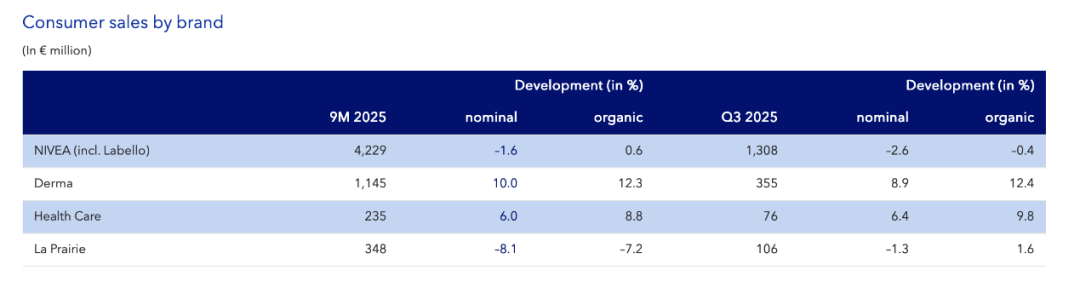 图 / 拜尔斯道夫2025年前三季度财报(消费者业务销售额)