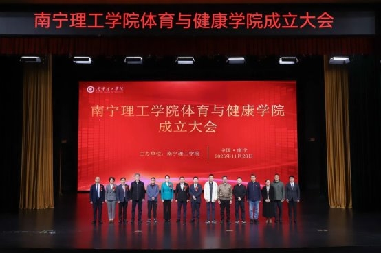 为深入践行体育强国与健康中国战略,推动体育学科高质量发展,11月28日上午,南宁理工学院体育与健康学院成立大会在南宁校区东盟大剧院隆重举行。政府部门代表、行业协会代表、各级领导、兄弟院校嘉宾与全校师生代表700余人齐聚一堂,共同见证这一历史性时刻。