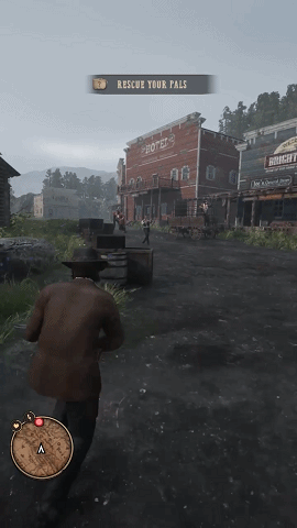 ②借大IP展现西部牛仔世界核心要素。项目组为了增强用户代入感,在《West Game II》的创意素材融入《荒野大镖客2》的相关元素,比如第三人称射击、“死神之眼”的射击动作,以及整体场面设计,本质上是借助热门IP的影响力提升产品热度,同时基于《荒野大镖客2》在欧美地区的大影响力,而且题材契合度高,相关素材能有效地增强产品的题材辨识度。