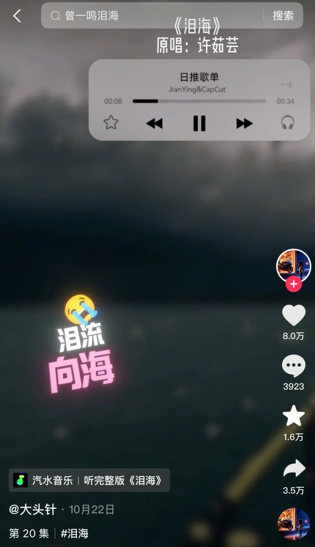 另一首《泪海》,也是出圈神曲。人们在其中反复咂摸到底是谁的声音,却发现找不到答案。“这个海可太张杰了”、“汪峰做梦都想唱成这样”、“像曾一鸣的声线”。有故人之姿正因为人家是故人之子,可以想象“大头针”初期被喂了太多乐坛经典声音。