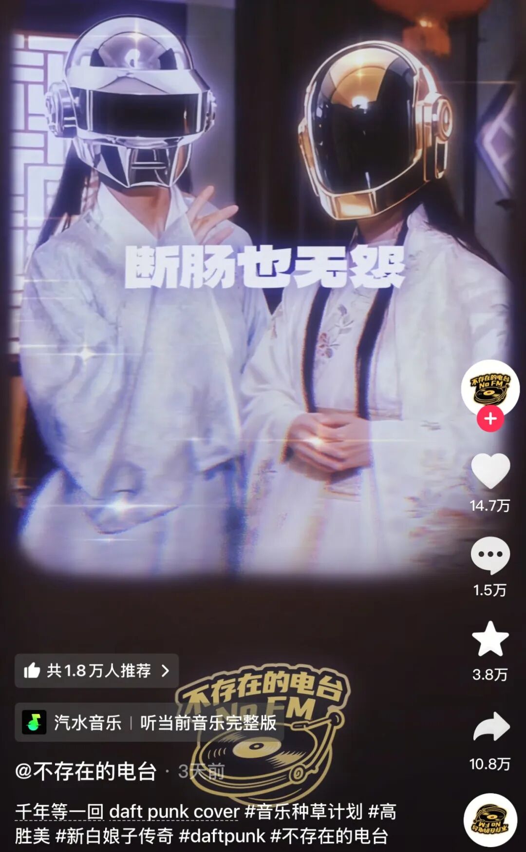 电音版《千年等一回》,被网友誉为赛博电鳗。Daft punk风味,让高胜美整个唱法变时尚。“许仕林你爹妈怎么认识的?”“搁西湖livehouse认识的。”听完像打了把《赤影战士》版的“新白”,像素化的白素贞和小青拿炮把法海轰趴下了。