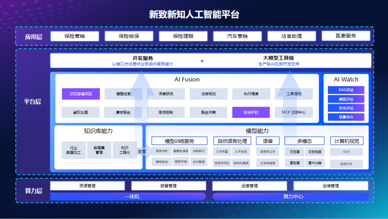 副总裁李峰称新致行业一体机不是简单的硬件+软件组合,而是“全栈数智能力的集成载体”。一体机搭载新致软件与生态伙伴联合优化的硬件——通过搭载安全可靠、自主可控的国产芯片及一体化解决方案,无缝衔接AI应用与底层算力;软件层面则预置新致新知平台、行业大模型及针对性开发的 AI 应用,最关键的是无需复杂适配,开箱即可落地。