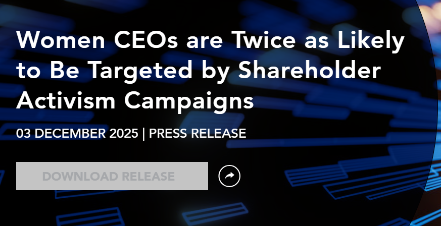 世界大型企业联合会(The Conference Board)12月3日发布报告显示,2018年至2025年期间,女性仅占罗素3000指数公司首席执行官的6.3%,但同期有15.7%的激进投资者行动将目标对准由女性担任负责人的公司。