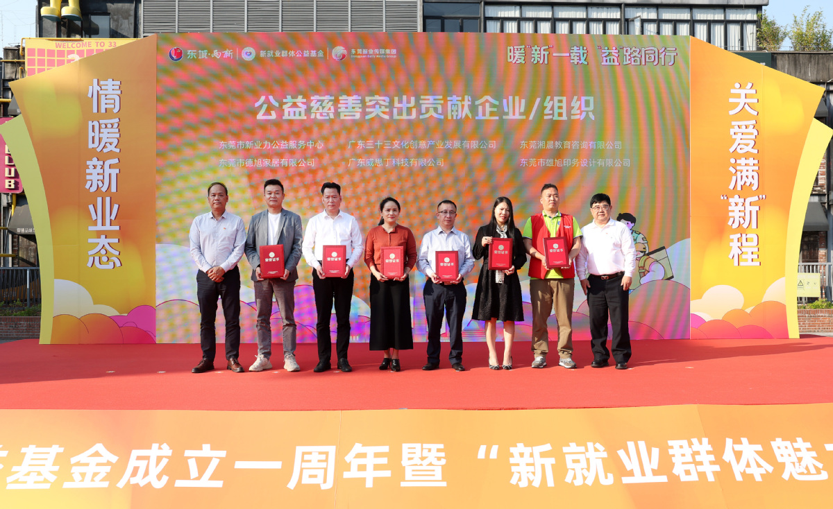 新就业群体的成长离不开社会托举。活动现场,东莞市正阳社会工作服务中心党支部等11个党组织获“爱心党组织”称号;广东三十三文化创意产业发展有限公司等6家企业获“公益慈善突出贡献企业(组织)”称号;陈志强、赵宏杰、王庆余3位“中国好人”获“公益慈善突出贡献个人”称号。
