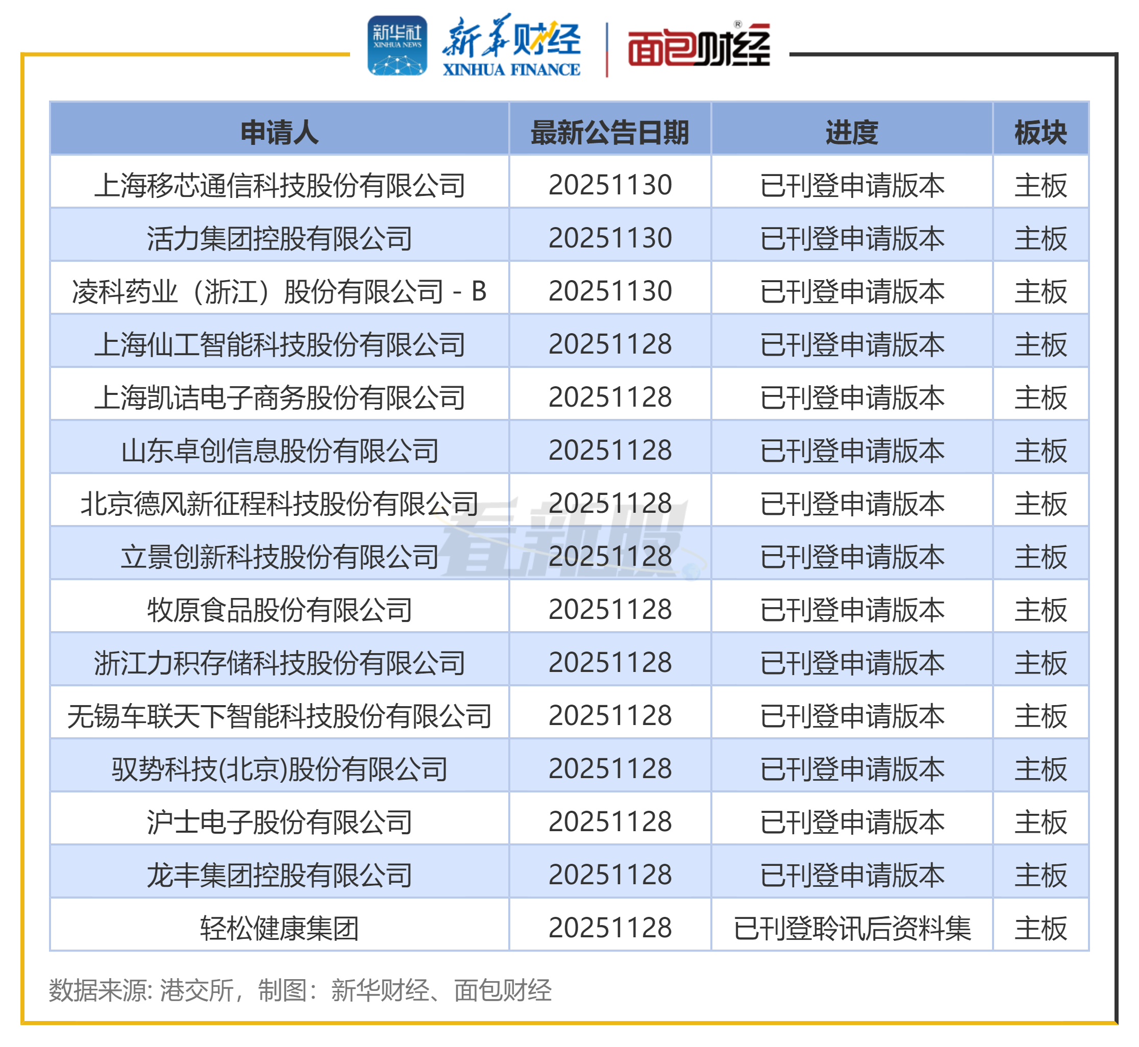 新华财经和面包财经研究员根据香港交易所披露信息,对港股IPO排队及新上市企业进行了梳理统计。其中,港股IPO排队企业选取依据为审核状态为已刊登申请版本、已刊登聆讯后资料集。