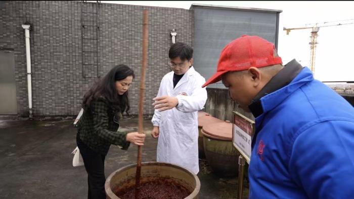 今年8月,郫都区组织从外地回收的“园椒40”辣椒样本,送至区内10家豆瓣企业进行加工测试。每家企业以150斤辣椒制作郫县豆瓣,经过一年发酵后,将在2026年第五届辣博会上展示,横向比较不同工艺的风味差异,进一步优化加工流程。 “这种辣椒辣度适中,转色快、酱色好,滋味柔和带回甜,适合开发传统豆瓣和红油豆瓣等多种产品。”四川省农业科学院农产品加工研究所副所长李治华评价道。丹丹豆瓣相关负责人也认为:“‘园椒40’辣味更足,做红油豆瓣可能更具优势。” 郫筒酱园有限公司车间主任李瑶表示:“辣博会提供了一个行业交流的大平台,企业之间可以互相学习、推广,共同提升工艺水平。”