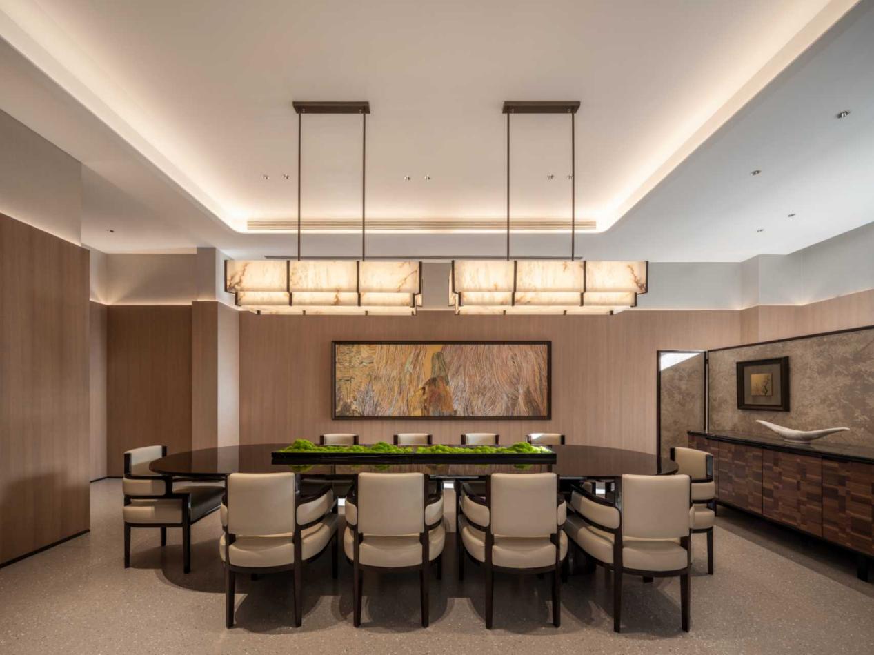 执笔330㎡户型空间叙事的设计大师冯智君(Nicholas Fung),深谙安缦创始人Adrian Zecha“简而不凡”的哲学精髓。他将此转化为一种东方式的“隐奢”表达——奢华并非张扬的符号堆砌,而是内敛于材质肌理、光线游走与空间气息的细微处。弧线的精准把握带来精准的技术之美,V形木面纹理的琢磨沉淀为匠作温度。它以特有的语言,引导视线,抚平心绪,在刚劲的现代建筑框架内,编织出一张温柔而富有张力的网,建立起一种呼吸般的亲密关系。