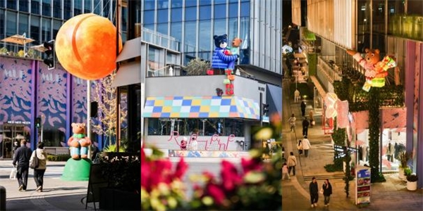 在国际艺术表达的基础上,前滩进一步拓展其空间实践维度。作为法国原创绘本角色在中国的首次四纬实景呈现,本次展览串联前滩公园巷、晶耀前滩以及L+PLAZA三大商业地标,形成了板块化的IP区域联动。展览紧扣“友情与勇气”的核心主题,铺陈出一条以主角“熊小宝”寻找伙伴为线索的叙事动线——将森林车站、孤独星球、幸福之门、花园迷宫等26组大型公共艺术装置布局于三个空间的户外和室内多个点位,串联起贯穿前滩全域的“童话巷”。