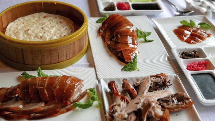 再比如著名的北京烤鸭可以搭配琥珀艾尔啤酒或者琥珀拉格啤酒。要讲究烤鸭的甜度和鲜嫩度,口味相互补充,这个搭配法则用在这里再好不过。黄金啤酒或一些甜味适中味道饱满的酒,确保你在品尝烤鸭的时候能够保留汁料的香味。