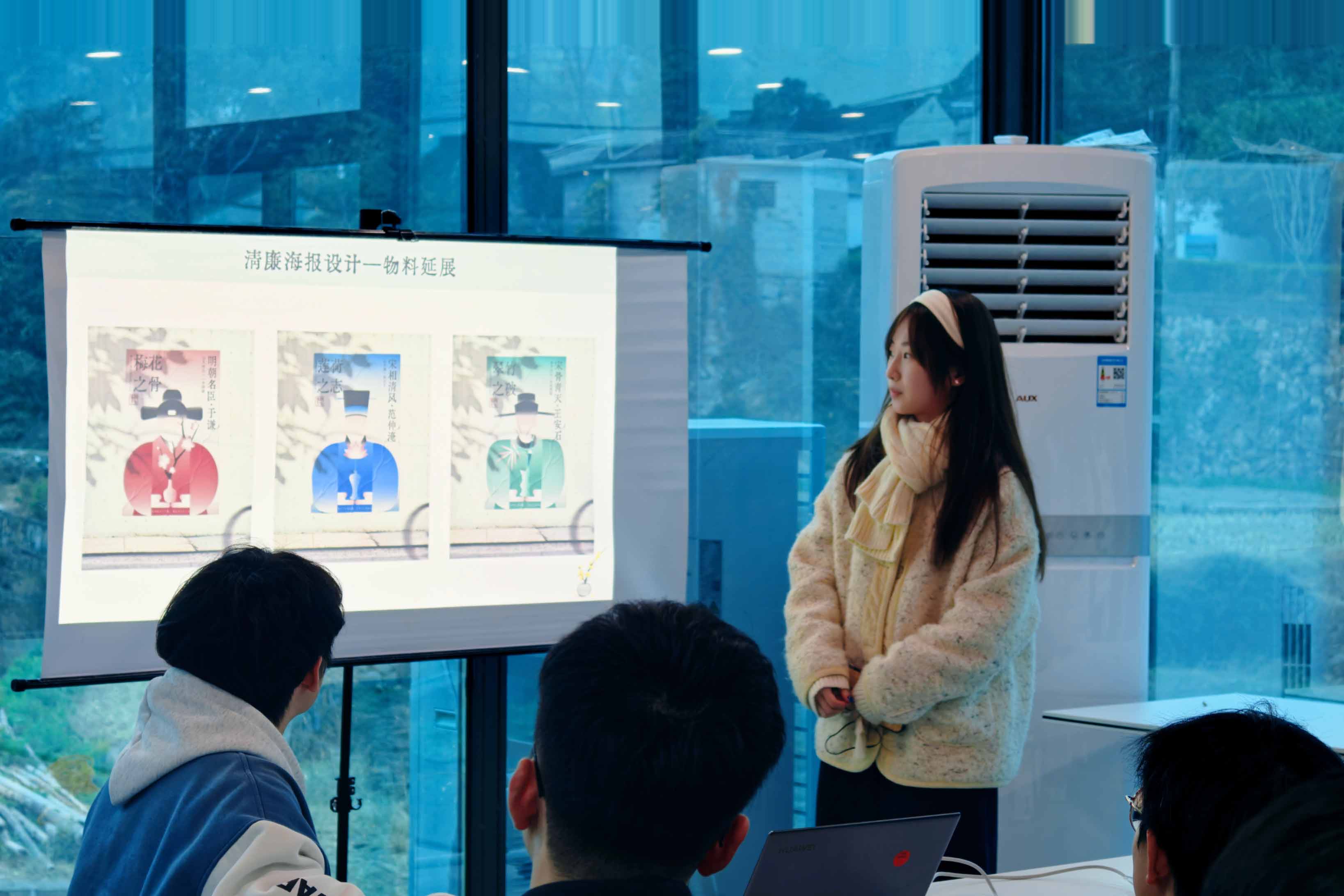 “这次实践活动让我们走出校园、扎根乡土,不仅锻炼了专业能力,更深刻体会到廉洁文化的时代价值和社会意义。”视传专业学生何春蕾说。学生陶姿伊以于谦、范仲淹、王安石等浙江清廉历史人物为精神内核,结合越窑青瓷造型创作《三贤廉韵,浙江清风》系列作品,用现代设计语言搭建起跨越古今的廉洁对话桥梁。