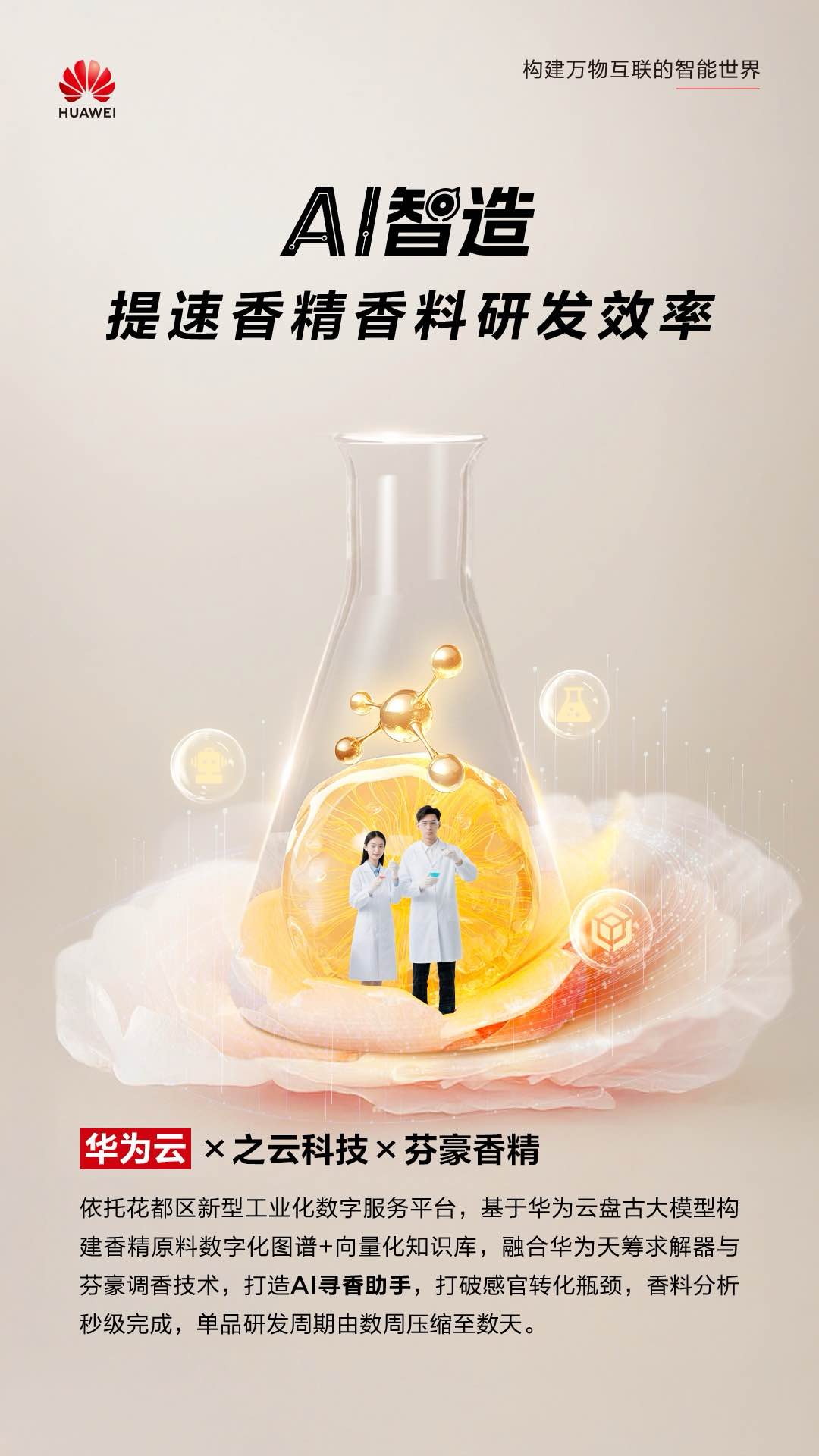 该系统以盘古大模型为技术底座,融合华为天筹求解器与芬豪调香技术,构建了"底层算法—中层工具—顶层应用"的三层技术体系。通过整合10000余个成品香精样板及对应色谱、质谱数据,建成标准化香韵数据库,将调香师的经验转化为可复制的数字资产,形成了"数据积累—算法优化—价值释放"的良性循环。