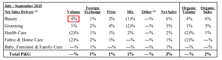 宝洁2026财年第一季度分业务板块销售额数据,截自宝洁官网