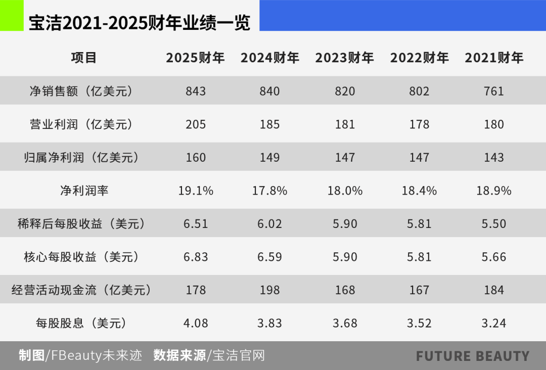 今年10月宝洁发布的2026财年第一季度财报可以称得上是这次战略调整成功的印证。财报显示,整个公司净销售额从2021财年的761亿美元,稳步攀升至2025财年的843亿美元,实现了连续五年的增长。宝洁在中国区市场的有机销售额同比增长5%,并且已经连续多个季度保持环比改善的积极态势。
