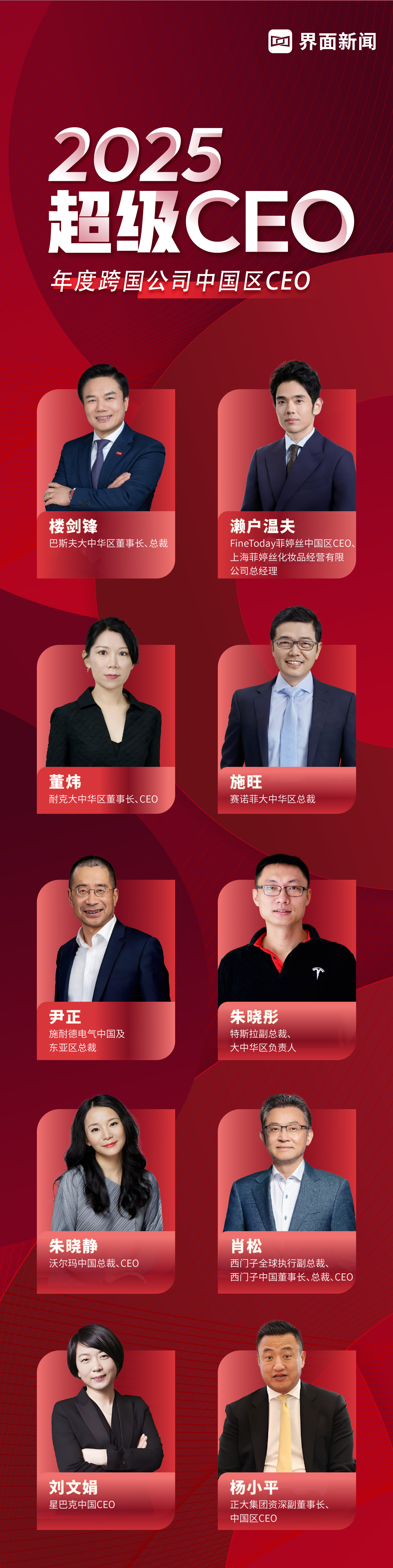 中国依然是增长速度最快的大型经济体之一。中国经济韧性、市场规模、基础设施、产业配套等仍是国际一流水准,中国仍是全球跨国公司重要制造基地和重要营收市场。随着利好政策不断出台,外商投资服务体系持续优化,跨国企业在华发展面临更大的机遇。面对中国市场的巨大活力与无限潜力,哪些跨国公司中国区CEO展现出了非凡的领导力,创造出了卓越的业绩?界面新闻「2025年度跨国公司中国区CEO」榜单为您揭晓。