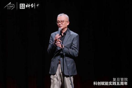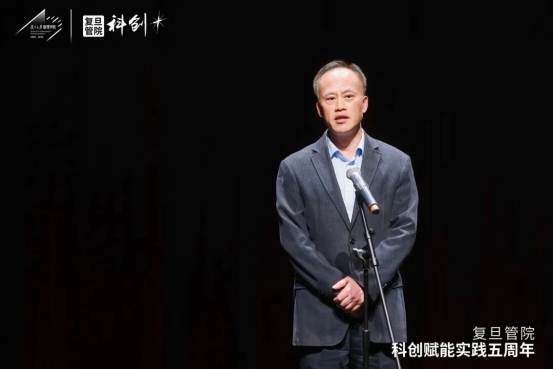 在复旦管院科创赋能实践五周年开幕式上,复旦大学管理学院党委书记陆雄文教授致辞。