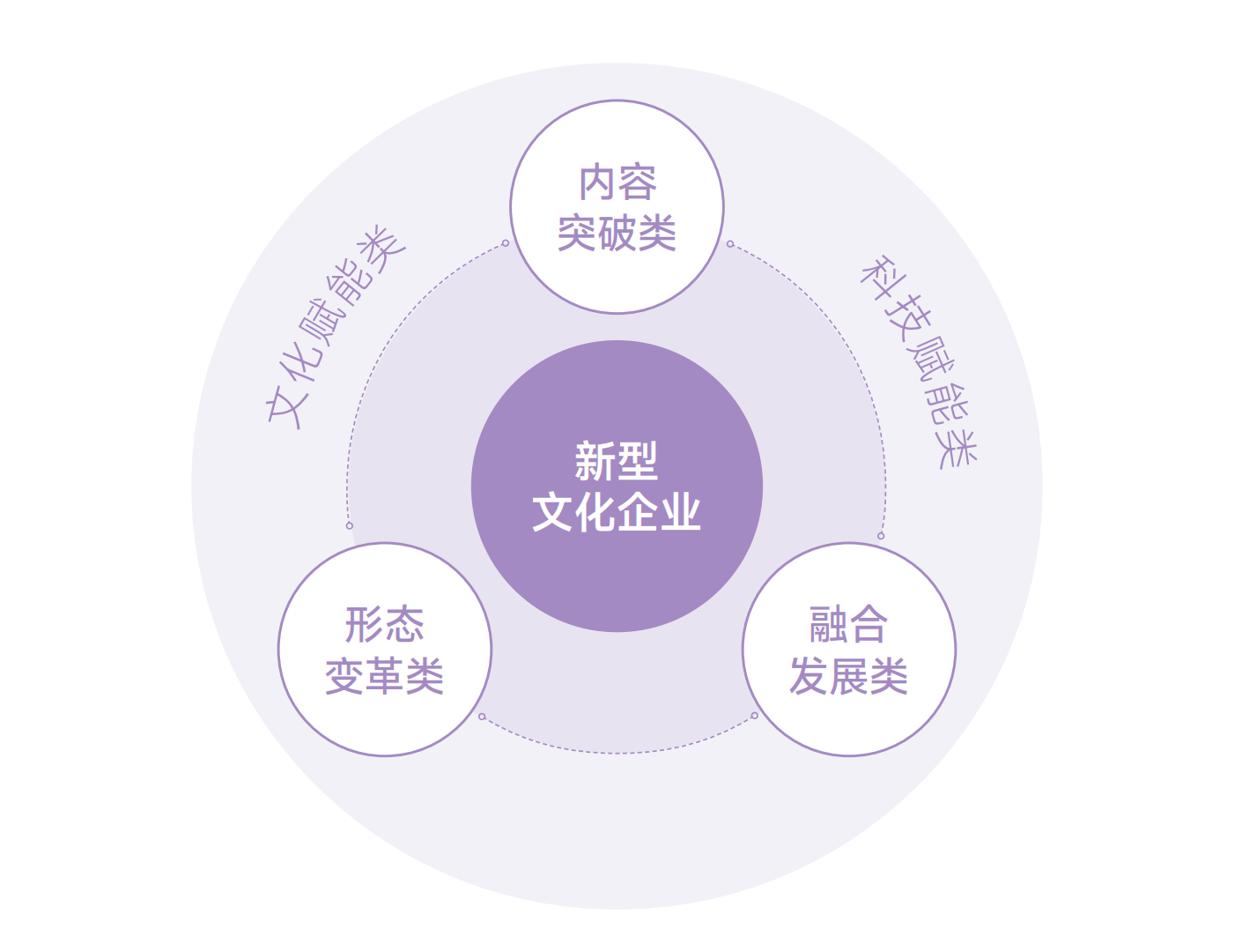 随着科技与文化、文化与百业的边界不断消融,厘清“新型文化企业”的内涵与特征,进而引导政策资源落地、资本有效投放、企业战略升级,成为一项紧迫而重要的课题。报告认为,新型文化企业是以社会主义核心价值观为引领、以文化传承与创新创造为内核,以新质生产力为驱动,通过数智化赋能、信息化转型和跨界化融合等手段,推动文化生产方式、传播方式、消费方式变革,助力“文化”和“百业”协同生态构建的泛文化市场主体。