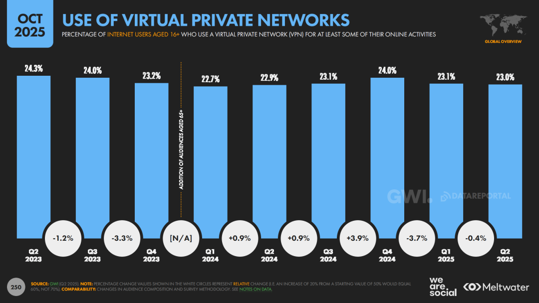 报告在隐私和数据部分呈现出一种全球共通的矛盾心态。一方面,约30.7%的用户明确表示担心企业滥用个人数据,“广告太多、跟踪太紧”是许多网民的真实感受;23%的用户使用VPN保护隐私,在俄罗斯、阿联酋、土耳其等国,VPN使用率尤其突出。另一方面,约37.8%的用户愿意“用数据换服务”,这意味着可以用个人信息让渡来能换取更顺畅的体验、更精准的推荐或更优惠的价格。