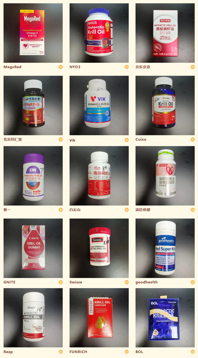 市面上南极磷虾油品牌繁多,价格差距悬殊,品质更是难以辨别,所以上海市消保委委托中国水产科学研究院东海水产研究所,对市面上热销的15款国内外南极磷虾油产品开展了检测和调查,重点关注磷脂、虾青素、EPA、DHA含量及价格(销售价格可能因销售活动等因素有所波动)。