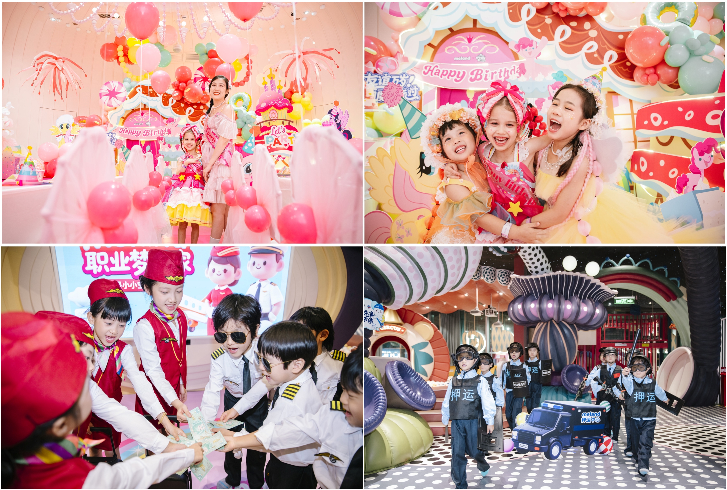 亲子乐园meland,也在这一大趋势下不断探索IP联名的“故事性+内容性+场景化+沉浸式体验”的全新乐园体验,先后推出了“小马宝莉”、“奶龙”、“熊出没”等IP联名活动及派对,并在其乐园推出了基于“财商启蒙”和“职业体验”的全新玩学互动体系,在空间、场景与游乐项目之外,开启“IP内容+玩学成长”的革新之路。