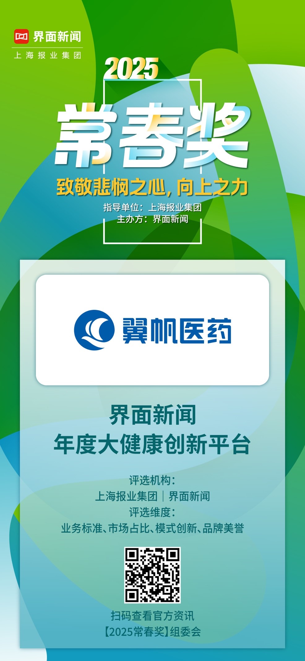 翼帆医药荣获2025【常春奖】年度大健康创新平台。