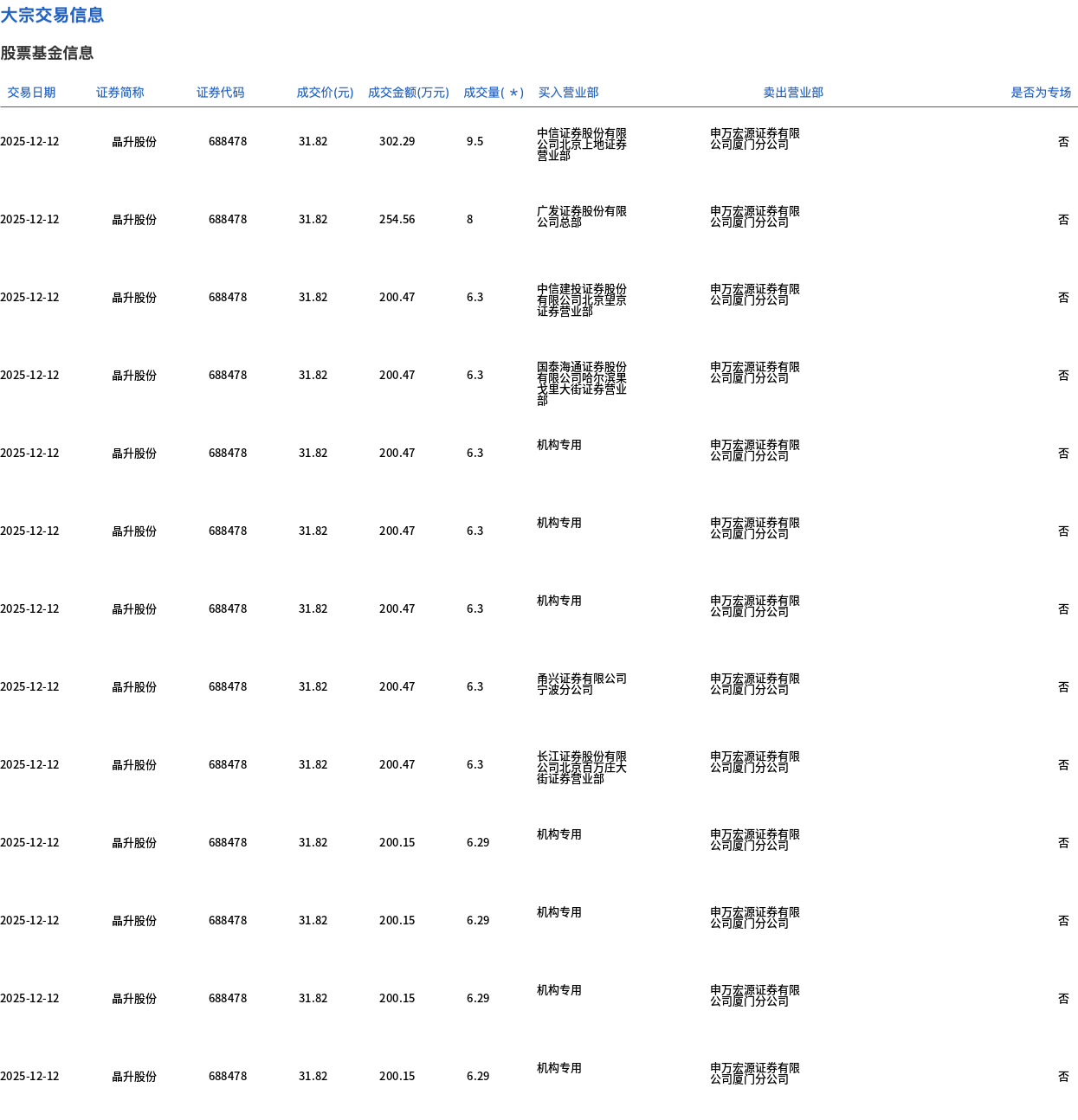 12月12日,晶升股份大宗交易成交86.76万股,成交额2760.74万元,占当日总成交额的23.41%,成交价31.82元,较市场收盘价37.04元折价14.09%。