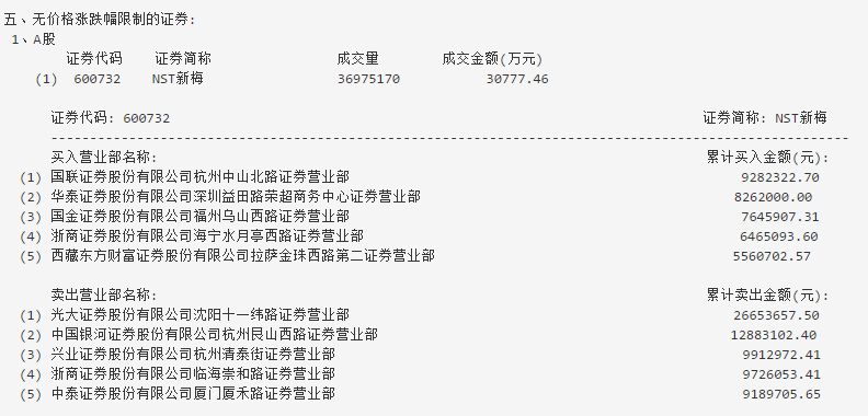 根据上交所的相关规定,恢复上市首日,*ST新梅股票简称为“NST新梅”,股票价格不设涨跌幅限制,如若该股盘中出现异常波动,交易所可根据市场需要,实施盘中临停。