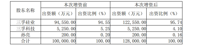 为了进一步增强公司控股子公司唐山三孚新材料有限公司(以下简称“三孚新材料)在硅烷偶联剂方向的项目研发、市场拓展、产品量产等方面的综合实力,三孚股份将自有的2.8亿元资金对三孚新材料进行增资。
