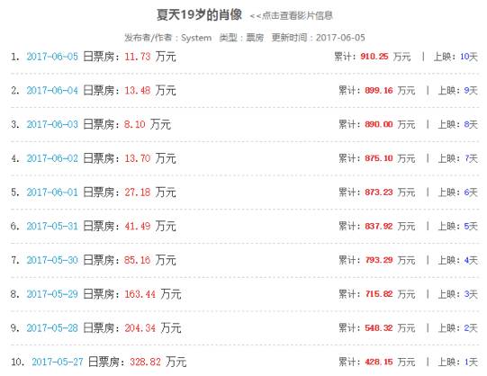截止6月5日,《夏天19岁的肖像》已上映10天,累计票房910.26万,成绩可谓惨淡。而终其原因,还真不在院线影院端的低排片,而是观众对这部电影的不买单。在制片人微博发文呼吁高排片的时候,就有网友用其曾出品的《小时代》相呛,虽然曾经的作品代表不了现在的实力,但却足以表明观众对“烂片”的零容忍,以及对高质量影片的诉求。