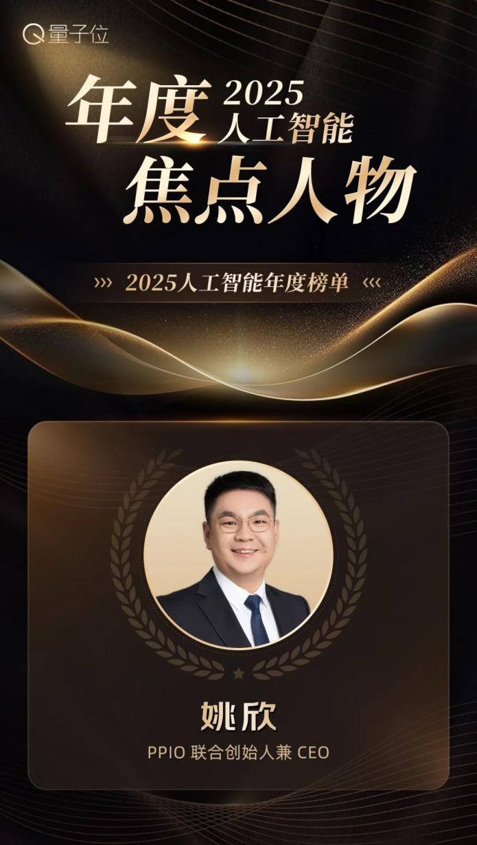 PPIO 联合创始人兼 CEO 姚欣与百度李彦宏、DeepSeek 梁文锋、Minimax 阎俊杰、月之暗面杨植麟、智谱张鹏、宇树王兴兴等高科技公司企业家,一同入围「2025 人工智能年度焦点人物」。