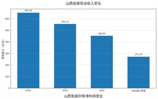 据山西焦煤季报、年报显示,该公司经营状况从2023年起,已呈现持续下滑趋势。据报告内容,该公司2023年和2024年,营业收入分别同比下滑了14.82%和18.43%,而归母净利润同比减少更为显著,同比分别减少了37.03%和54.10%。2025年前三季度业绩同样承压,营业收入和净利润分别较上年同期减少了17.88%和49.62%。
