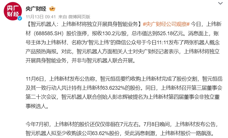 近期,就在智元机器人完成收购上纬新材的同期,又一家AI独角兽企业筹划“买入”一家上市公司。
