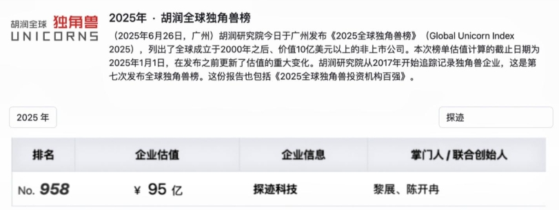 在公告中,探迹科技对于资金来源仅表示自有或自筹资金,不过探迹科技成立以来并未直接披露过财务和盈利状况。2025年11月胡润研究院发布的《2025全球独角兽榜》显示,探迹科技估值为95亿元。